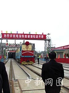 “粵海鐵一號”渡船注定會在中國交通史上寫下濃濃的一筆。隨著它今天上午的首航,中國大陸與海南島之間沒有鐵路相通的歷史一去不復返了。記者有幸參加“粵海鐵一號”的處女航,印象十分深刻!盎浐hF一號”是粵海鐵路跨海運輸的主要交通工具,近日從上海抵達海口,該渡輪總造價四點二億元人民幣,為柴油機雙推進,整個渡輪共分三層,最頂層可同時停放裝滿貨物的汽車五十輛,中間層載客,前后四個大客艙;最下層裝載客運列車,四對鐵軌各長一百四十五米,可停放四十節貨車或十八節客列。據悉,“粵海鐵二號”也將于今年四月交船并投入使用,屆時,將與“粵海鐵一號”對開“擺渡”。