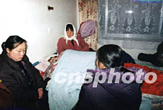 中國山東濰坊昌大集團建筑工人李培中一月五日在以色列特拉維夫自殺事件中遇難,李培中的妻子聽到噩耗后悲痛欲絕病倒在床上,親友們整日守在她身邊勸慰。作者:徐玉漢