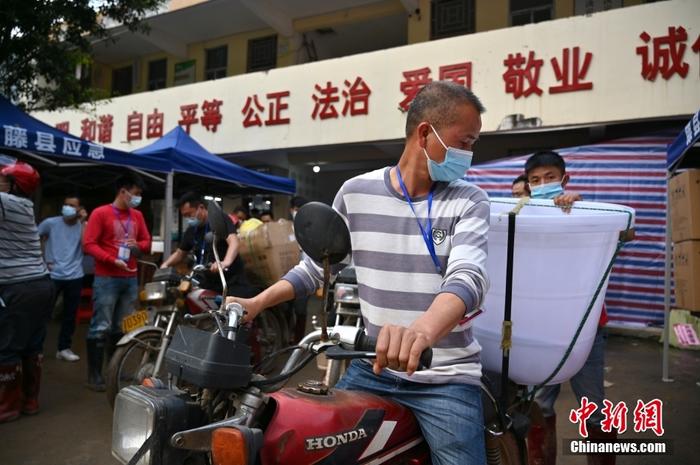 村民自發(fā)使用摩托車(chē)運(yùn)送救援物資