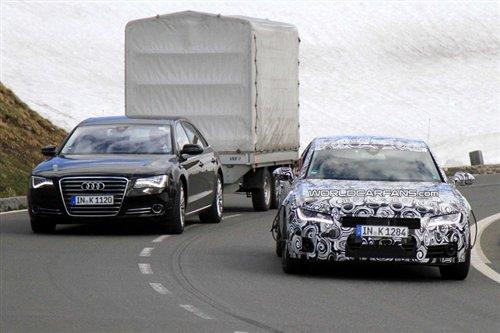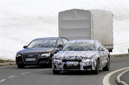 近日奧迪A7和新一代A8同時(shí)出現(xiàn)在奧地利的高速公路上,雖說(shuō)A7的測(cè)試已經(jīng)進(jìn)入尾聲并且即將發(fā)布,但是嚴(yán)謹(jǐn)?shù)牡聡?guó)人依舊將這臺(tái)全新四門(mén)Coupe包裹的嚴(yán)嚴(yán)實(shí)實(shí)的,不過(guò)就算是這樣,路試車(chē)輛還是留下了一些蛛絲馬跡。