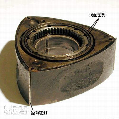 由于轉子發動機將空燃混合氣燃燒產生的膨脹壓力直接轉化為三角形轉子和偏心軸的轉動力,所以不需要設置連桿,進氣口和排氣口依靠轉子本身的運動來打開和關閉;不再需要配氣機構,包括正時齒帶、凸輪軸、搖臂、氣門、氣門彈簧等,而這在往復式發動機中是必不可少的一部分。綜上所述,轉子發動機組成所需要的部件大幅度減少。