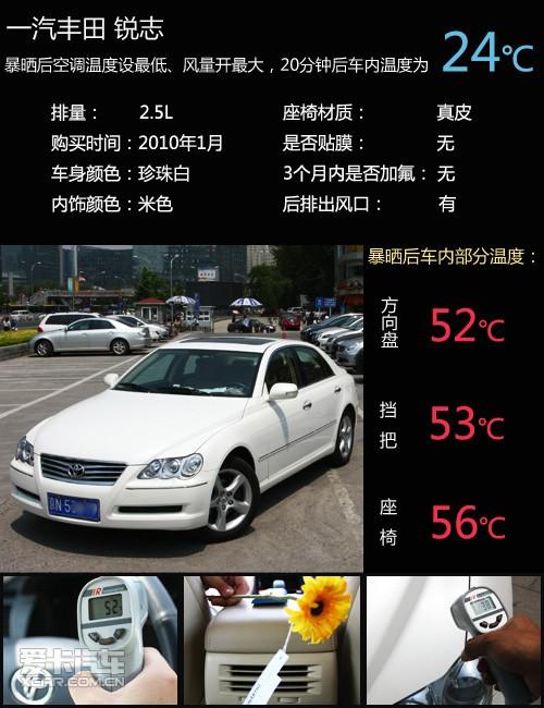 這臺今年1月份提的銳志空調(diào)涼得很快,運行時發(fā)動機發(fā)出的噪音很低,真想坐在里面不出來。珍珠白車漆要比黑色車溫度低很多,總體來說表現(xiàn)不錯。