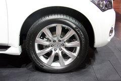來到車身側面我們更加會覺得QX56的龐大,整體造型圓潤,沒有多余的線條作為修飾,但是反而會讓人感到車身很厚實。無鑰匙進入也毫無懸念的裝配在了QX56身上,兩側翼子板上的散熱孔并非形同虛設,而是告訴我們它裝載了一臺V8 5.6升汽油發動機。其次英菲尼迪慣用的大尺寸輪轂同樣被裝到了這款新車上,22寸9幅造型的鋁合金輪轂使我不得不說很有氣勢,與之搭配的是普利司通275\50 R22輪胎,抓地力應該相當不錯。