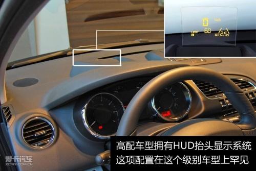 中控臺上伸手可及的地方已經被多媒體系統、自動空調已經其他各種各樣的功能按鍵所占據,這也使得廠商只能把GPS導航的液晶屏設計到了中控臺的上部,通過翻蓋的方式開啟。另外值得肯定的是,作為一款緊湊級車型,標致3008居然采用了HUD抬頭顯示系統,不過投影的車況信息不是投在前風擋上,而是投在儀表盤前部獨立的透明玻璃上。