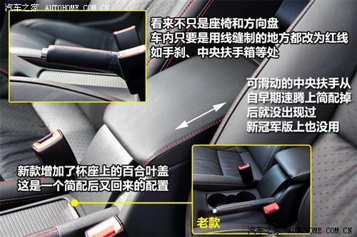 內飾的變化主要有兩方面,一是將車內真皮的縫合線從白色變成紅色,與整體黑色的內飾結合,運動效果更明顯。另一處實用性更強的變化就是將真皮座椅進行打孔處理,現在已經進入夏天,將會有更多的新冠軍版車主享受到這項變化所帶來的好處。增加的實在配置還有定速巡航,少說也是幾百元的成本。