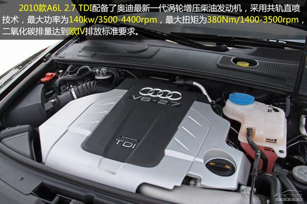 第一個(gè)上場(chǎng)的是一汽奧迪2010款A(yù)6L 2.7TDI車型。此車型代表了目前奧迪最先進(jìn)的柴油發(fā)動(dòng)機(jī)技術(shù),而且是國(guó)內(nèi)首款裝備柴油發(fā)動(dòng)機(jī)的高檔車型,可以說(shuō)是業(yè)內(nèi)第一個(gè)吃螃蟹的,因此編輯選了這款作為柴油車型的代表。
