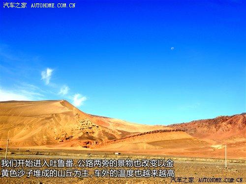 公路兩旁開始出現(xiàn)了以金黃色沙子堆成的山丘,車外的溫度也越來(lái)越高,窗外吹來(lái)陣陣的暖風(fēng),這也意味著我們開始進(jìn)入吐魯番了。在進(jìn)入吐魯番之前我們已經(jīng)經(jīng)過(guò)連了2個(gè)小時(shí)的趕路,為了安全起見(jiàn),我們選擇了吐魯番游務(wù)服務(wù)中心休息,而車主和維修人員則開始忙忙碌碌地檢測(cè)車輛。