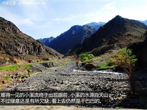 在山路行駛的前段時(shí)間令人十分枯燥,山路兩旁都是光禿禿的巖石山,十分欠缺綠意,干巴巴的!唯一可以吸引眼球的就是山路旁邊的小溪流,據(jù)當(dāng)?shù)剀囍鹘榻B這小溪流的水源自天山,十分冰涼。
