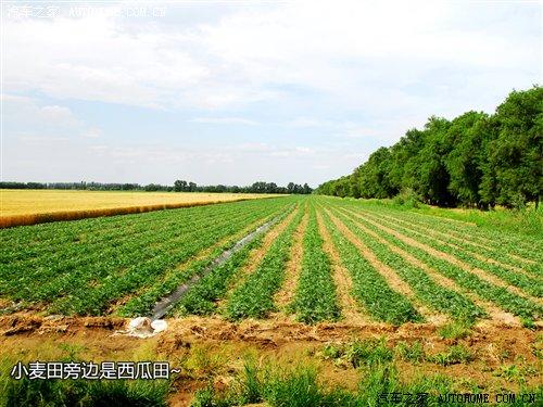 途中我們經過了一些駐彊部隊的村莊,在這里可以看到農作物豐收的景象,一片片金黃的小麥田、一片片綠綠的西瓜田、公路兩旁整整齊齊的大樹等等這些都是當地才有的農村特色,也是當地農業興盛的最好證明。
