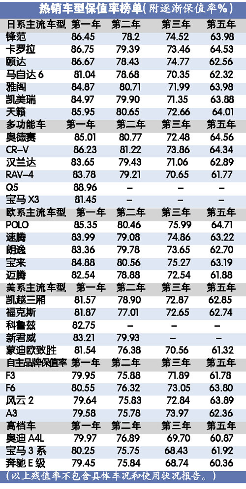 相對而言,大眾品牌的車型在廣州市場上繼續保持高保值率的“美名”,尤其以POLO、速騰、寶來、朗逸此類10萬元左右的A級車保值率最高。