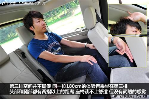 發現沒有采用全景天窗的設計讓人遺憾,不過前后三個獨立的天窗也能帶來非常出色的采光效果。在三排座椅全部打開的情況下,后備廂可以使用的空間會非常小,所以建議平時還是收起第三排座椅為好,而將第二排座椅也放倒后,它的最大深度可以達到1910mm,不過地板并不是完全平坦的影響了實用性。