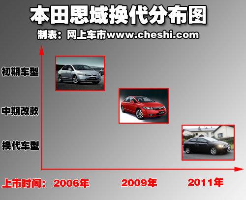 日本汽車企業旗下車型的換代周期一般在4-5年,而中期改款則只需要2年左右的時間。目前東風Honda思域自2006年進入中國市場已有4年多的時間了,而這款車在2009年1月推出了中期小改款車型(目前市場上銷售的車型-新思域),因此東風Honda在2011年推出全新車型也是勢在必行。