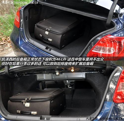 凱澤西的后備箱正常狀態下容積為461升,這個參數甚至還不如某些后備箱較大的緊湊型車,而一般中型車的標準是500升以上。而且如果你在搬運一些較重的物品時,你需要先將其抬起69cm,再慢慢放下16cm后才能將其放入后備箱,不過實際上69cm的高度要低于大部分車型,也就是說車主搬運時付出的體力要少一些。
