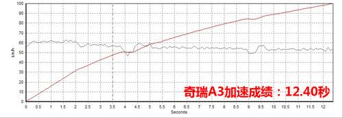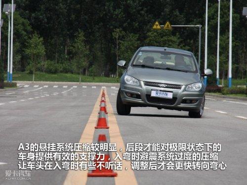 在0-100公里時速加速測試中,A3的避震系統有些拉不住,車頭抬升的比較明顯,205的瑪吉斯輪胎也不能提供足夠的抓地力,起跑的不利對成績應該會有些影響。其實A3的新發動機動力輸出很線性,這也是自主品牌廠商一直都青睞的調教方式,所以你無法從中找到強烈的爆發點。最終的成績也是中規中矩的,12.4秒的成績比之前的老款發動機已經有了明顯提升。