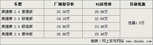 據(jù)北京地區(qū)廣州本田4S點(diǎn)銷售人員表示,目前銷售的08款?yuàn)W德賽現(xiàn)已全部停產(chǎn),各個(gè)4S店均在銷售庫(kù)存車輛,由于貨源緊張,優(yōu)惠幅度較前一陣明顯有所減少,全系車型均只優(yōu)惠1.5萬(wàn)元(4月優(yōu)惠幅度高達(dá)2.2萬(wàn)元)。消費(fèi)者現(xiàn)在購(gòu)車除了可以得到現(xiàn)金優(yōu)惠外,還可以得到商家贈(zèng)送的原廠汽車裝飾。在現(xiàn)售的四款?yuàn)W德賽車型中,普通版座椅為絨布材質(zhì),其他三款均為真皮材質(zhì),現(xiàn)車多以黑色和銀色為主。