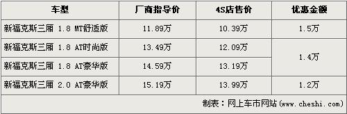 福克斯憑借出色的外觀設(shè)計及極佳的操控性贏得了市場的認(rèn)可,在銷量方面一直保持迅猛的勢頭。尤其新款福克斯的上市,一改內(nèi)飾略顯粗糙的詬病,使得福克斯更趨于完美。福克斯采用了沃爾沃S40底盤,將操控進行到底,這一優(yōu)勢博得全世界的掌聲,名副其實成為了這個級別的標(biāo)桿車型。據(jù)網(wǎng)上車市價格系統(tǒng)檢測顯示,目前三廂福克斯全系優(yōu)惠1.5萬元,具體車型價格請看下表: