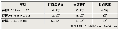 薩博9-3-最高優(yōu)惠6萬元 低配車型需預(yù)定