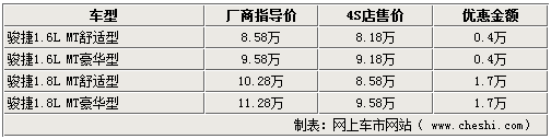 據(jù)北京地區(qū)華晨中華汽車4S店銷售人員介紹,駿捷1.8L目前現(xiàn)車都比較齊全,而且優(yōu)惠幅度較大,維持在1.7萬(wàn)元左右。同時(shí)購(gòu)買駿捷1.6L車型也可優(yōu)惠現(xiàn)金4000元,相當(dāng)?shù)某怠A硗猓绻降暝斦劊可以贈(zèng)送部分裝飾。