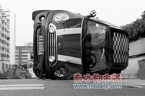 昨日早上6時30分許,一名帥哥帶著兩名女子,駕駛一輛紅色MINICOOPER在廣州越秀區(qū)下塘西路側(cè)翻。