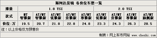 斯柯達昊銳9款車型售價曝光 19.5萬-28.2萬