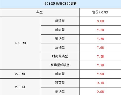 今日,長安汽車旗下兩廂新車CX30正式上市,此次上市的共兩個排量9款車型,其中包括低碳弱混合動力車型,售價區(qū)間為6.88-9.98萬元。具體的車型售價請見下表: