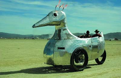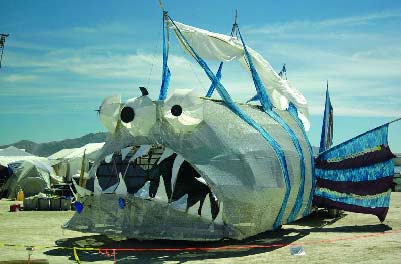 說到美國,迄今為止恐怕沒有什么比汽車更能代表這個國度了。所以,在今年的節日上,我們也有幸看到了各式各樣的怪異汽車:木制的悍馬被涂得五顏六色、窮兇極惡的大鯊魚齜牙咧嘴、美國式的泰坦尼克號……一句話,在追求異想天開與荒誕的BurningMan節日,沒有什么不可能。看看這些圖片,您是否也能做一輛?