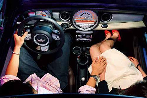 所以,這是輛有靈性的MINI,它會教你如何讓“潮女潮男” 們投懷送抱。復古的開關總會引得座客把玩,七彩魔幻的氛圍燈也會在恰當的時候助燃激情。甚至寶馬式的方向盤換擋撥片此時也變得很有人情味兒,加減擋足可以用一只手來完成。那另一只呢?當然是和情人的左手緊扣在一起嘍!然而,想得到艷情的代價是你必須懂得什么叫MINI。如果你完全不能容忍硬邦邦的懸掛、轟隆隆的胎噪和發動機聲音,那你還是趁早買輛現代Coupe吧!