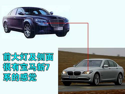 從側面看,能夠更直觀看出它與寶馬7系的相似度,同樣的車頂弧線、高腰線,甚至連多輻輪轂都相當神似,不過寶馬所推崇的后窗內旋弧度沒有被搬走。