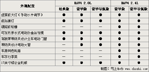 2009年4月10日,以先行進口引入中國最終在國內實現本地化生產的豐田RAV4,正式登陸中國汽車市場上市銷售。準備購買這一車型的消費者,在面對著這一擁有2.0L與2.4L兩種排量共計10款車型,售價從18.98萬元至26.43萬元的國產RAV4,難免會看得眼花繚亂不知從何下手“十選一”挑出一臺適合自己的新車。通過對以下國產RAV4十款車型配置差異的解析,或許您會找到答案。