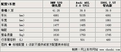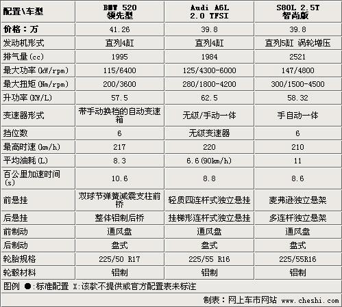 在動力配置方面,沃爾沃S80L入門車款就配備了2.5T發動機,因此動力性方面會更占優勢;而A6L的2.0T引擎兼顧了低排量和高效動力的優勢同時也滿足了政府采購的需求;而寶馬新上市的520li僅僅配備了一臺4缸自然進氣引擎,盡管其數據在同排量自然進氣引擎中算是出色的了,但是比起另外兩個對手來說動力性上確實有些差距。