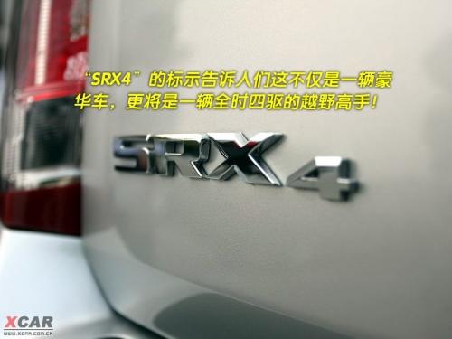 轉到車尾,和上一代SRX上的表示不同,尾部立式LED剎車燈旁出現了“SRX4”的標示,“4”的字體比車型代號小了不少,這應該就是新SRX全時四驅的獨特標志,也告訴人們這不僅是一輛豪華車,更將是一輛全時四驅的越野高手!
