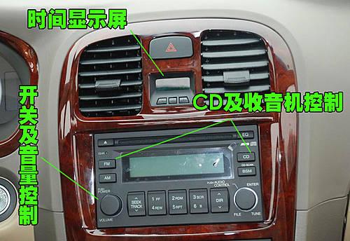 名馭的音響控制區域上方位置配備了時間顯示屏幕,并可以手動調節。單碟CD以及收音機功能控制均有配備。按鍵使用時操作比較方便。