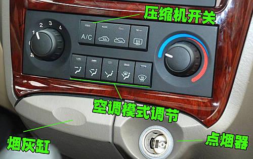 名馭的空調控制區域和老款風格一樣,下方位置配備了一個隱藏式的煙灰缸,右邊配備了點煙器。按鍵和旋鈕操作時沒有松垮的感覺。