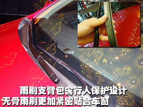 思鉑睿的前風(fēng)擋采用雨點(diǎn)感應(yīng)式可變間歇式無骨刷,無骨雨刷可以有效的保持前風(fēng)擋的干凈。