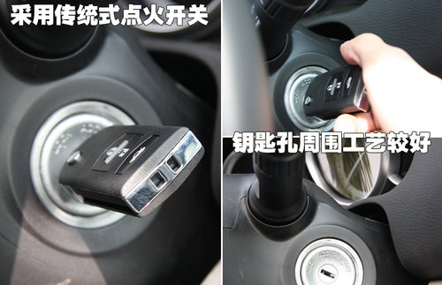 這款2.0L車型采用了傳統(tǒng)式點(diǎn)火開(kāi)關(guān),實(shí)際使用中點(diǎn)火也很快速,抖動(dòng)不明顯。睿翼頂配車型則配有一鍵式啟動(dòng)按鈕。轉(zhuǎn)向柱周圍的做工較好,塑件縫隙均勻、細(xì)小。