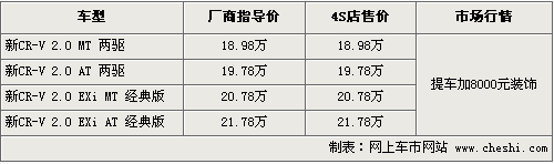 新CR-V全系7款車型有四款2.0排量車型。據(jù)東風(fēng)本田北京地區(qū)4S店銷售人員介紹,目前CR-V加價繼續(xù)降低,但現(xiàn)在提現(xiàn)車還需加裝8千元的裝飾,裝飾項目包括了腳墊、尾翼、行李架、踏板等。消費(fèi)者可根據(jù)需求選購,但是消費(fèi)金額必須達(dá)到8千元。目前有黑色、銀色現(xiàn)車供應(yīng),白色車型比較緊張,需要預(yù)訂,訂金為2萬元,最快年底前可以提到車。北京地區(qū)各4S店由于訂單不同,各店銷售的現(xiàn)車顏色有所不同。
