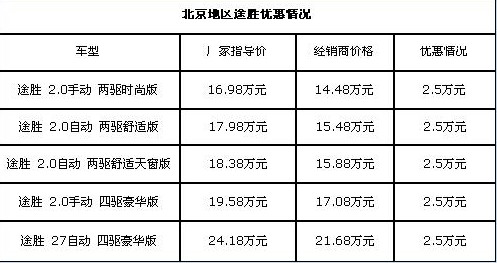 4、現(xiàn)代途勝全系優(yōu)惠2.5萬元