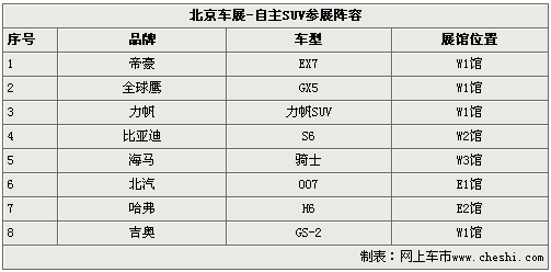 帝豪GX5/海馬騎士等8款自主SUV 車展首發