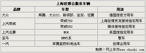 除了在展館內(nèi)展出的新車,各大汽車廠商也對組委會和場館提供了服務(wù)用車。自2008年成為北京奧運會官方用車合作伙伴之后,大眾汽車在即將開幕的2010年上海世博會中,成為德國國家館官方用車合作伙伴,將頂級豪華轎車輝騰等6輛官方用車正式交付給上海世博會德國國家館。上汽榮威旗下的榮威750和550則成為了世博會貴賓指定用車和媒體制定用車。寶馬公司則提供的22輛530Li轎車將納入交警總隊警務(wù)開道車隊,為世博會期間迎送貴賓擔(dān)負起安全保障工作。