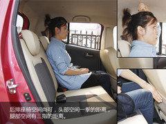 再來看新奧拓前后排座椅空間,在保持一個(gè)舒適坐姿的情況下,1.65米的編輯前排頭部離頂棚大概有兩拳左右的距離,后排頭部離頂棚有一拳的距離,腿部空間大概三指左右,總體來說表現(xiàn)還算不錯(cuò),尤其是前排的頭部空間很寬敞,顯然這得益于新奧拓所有車身參數(shù)的增大。