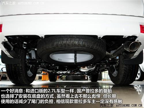 在輪胎和備胎方面,普拉多仍然堅(jiān)持使用鄧祿普的GRANDTREK系列輪胎,只不過花紋從老款的AT20升級(jí)到AT22。另外,新款普拉多有備胎外掛和底盤內(nèi)藏兩種版本,外掛顯得很彪悍,但長(zhǎng)時(shí)間使用的話會(huì)引起尾門的變形,從而產(chǎn)生噪音和密封性的問題,這點(diǎn)老款普拉多車主經(jīng)常抱怨,當(dāng)然好處是車輛有足夠的位置設(shè)計(jì)副油箱,從而增加續(xù)航里程。進(jìn)口和國(guó)產(chǎn)的新款普拉多選擇了將備胎隱藏在底盤下面的版本。