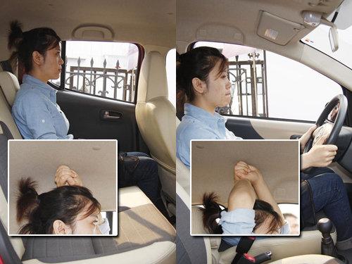 上圖的空間展示者身高不超過170cm,我們可以很清楚的看到,她在車內的前排的座位上,奧拓給予她的空間還是很充足,而后排頭部空間方面,對于她的身高來說,只能算是夠用而已。