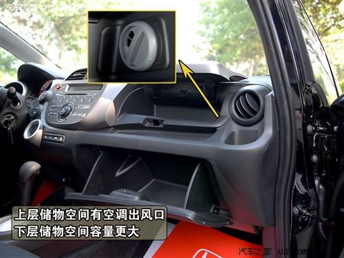 飛度手套箱分為上下兩層,手套箱形狀比較規整,容積也比較大,儲存隨車物品十分方便,而最重要的是上層的儲物盒與是與空調相連接的,帶有一個空調出風口,可以放入一個普通瓶裝飲料或者兩個罐裝飲料,旋轉出風口至打開的位置,一個簡易車載冰箱就形成了。不過只有1.5L車型才有出風口開關,但是網友稱,在網上可以買到旋轉開關,幾十塊錢自己DIY也能搞定。