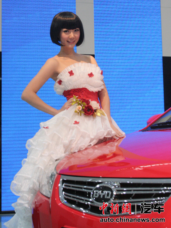 有車的地方總是離不開美女,香車與美女總是相映生輝,廣州車展上的比亞迪展臺更是不例外。