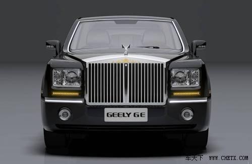 吉利GE的車長在5.3米左右,軸距3.1米左右。我們從外形上可以看出,它與勞斯萊斯幻影有著非常相似的造型,僅在細節處理上有所不同,GE大燈異常寬大,接近正方形,勞斯萊斯幻影上的大圓霧燈則移植到保險杠上,大燈與霧燈中間以長條形的方向燈隔開。而這也是吉利這款高檔豪華轎車的理念:具有勞斯萊斯風格的產品。