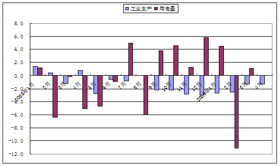 工業(yè)生產增長與用電量增長不一致。去年6月份和7月份,美國工業(yè)生產同比分別下降0.1%和0.7%,而發(fā)電量同比卻分別增長2.7%和2.3%;5月份工業(yè)生產增長0.2%,而發(fā)電量卻下降1.7%。今年1月份和3月份,歐元區(qū)工業(yè)生產環(huán)比分別下降2.7%和1.3%,而用電量環(huán)比分別增長4.1%和1.1%;2008年的12個月份中,工業(yè)生產環(huán)比變化與用電量變化方向不一致的月份有8個之多。去年7月至9月,日本工業(yè)生產同比分別下降0.2%、5.7%和4%,而用電量卻分別增長6.5%、0%和0.6%。