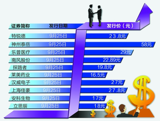 今天,投資者將迎來創業板新股的第一場盛宴:首批10只新股“十箭齊發”,中簽率有望比中小板新股大大提高。不過,創業板十新股發行市盈率奇高,最低的也有40倍。以發行價來看,最高的神州泰岳達到58元,最低的萊美藥業也有16.5元。