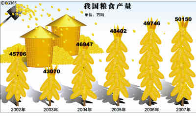 改革開(kāi)放以來(lái),我國(guó)雖然積極開(kāi)拓利用兩種資源、兩個(gè)市場(chǎng),但不管經(jīng)濟(jì)環(huán)境怎樣變幻,我國(guó)始終不渝堅(jiān)持以國(guó)內(nèi)為主滿足糧食需求、確保國(guó)家糧食安全的方針。進(jìn)入新世紀(jì)以來(lái),黨和政府更采取了一系列“惠農(nóng)、興糧、富民”政策,廣大農(nóng)民種糧生產(chǎn)積極性空前增強(qiáng),全國(guó)農(nóng)業(yè)糧食連續(xù)4年增產(chǎn)。2007年,全國(guó)糧食總產(chǎn)量超過(guò)5億噸,除大豆外,谷物完全能滿足需求。目前中國(guó)糧食的對(duì)外依存度很低,糧食自給率一直保持在95%以上。同時(shí),我國(guó)糧食儲(chǔ)備也連續(xù)增長(zhǎng),糧食安全系數(shù)達(dá)到30%以上,遠(yuǎn)遠(yuǎn)超過(guò)聯(lián)合國(guó)糧食及農(nóng)業(yè)組織(FAO)提出的17%—18%的糧食安全線。