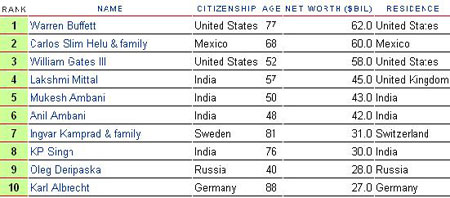 墨西哥電信大亨卡洛斯·斯利姆·埃盧(Carlos Slim Helu)個人資產達600億美元,位居全球第二位,而微軟主席比爾蓋茨雖然在過去13年里一直蟬聯首富桂冠,但其資產因微軟股價下跌而縮水為580億美元僅屈居第三。