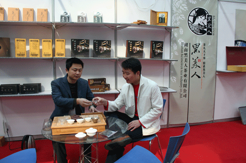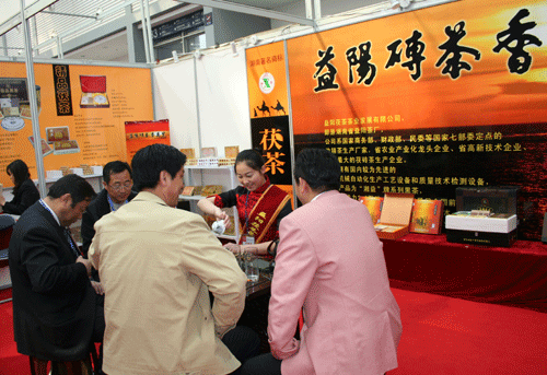 湖南益陽黑茶展臺設(shè)在西洽會的B2區(qū),特色的茶具,古色古香的茶葉包裝展覽,使得整個展區(qū)彌漫著黑茶歷史文化的氛圍。益陽是全國最早也是湖南最大的黑茶產(chǎn)區(qū),黑茶歷史文化資源十分豐厚,這里是中國第一塊黑磚、第一塊花磚、第一茯磚的誕生地,而益陽安化還是古絲綢茶路與茶馬古道的起始點、出發(fā)地,至今保留許多有重大歷史文化遺產(chǎn)價值的文物古跡,也是至今世界唯一的千兩茶生產(chǎn)地,2006年2月14日中央電視臺《鑒寶》欄目展出一簍53年前產(chǎn)自安化白沙溪茶廠的天尖,專家評價48萬元并被競買走,轟動了全國茶葉界和收藏界。一直以來,黑茶是湖南的主要茶類,年產(chǎn)量達(dá)2.5萬噸,占全國總量的50℅以上,為保障邊疆少數(shù)民族地區(qū)人民生活需要和邊疆地區(qū)的穩(wěn)定、繁榮,維護(hù)國家民族團(tuán)結(jié)作出了重大貢獻(xiàn)。(廖艷瓊)